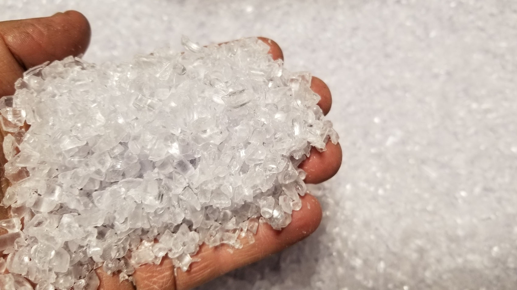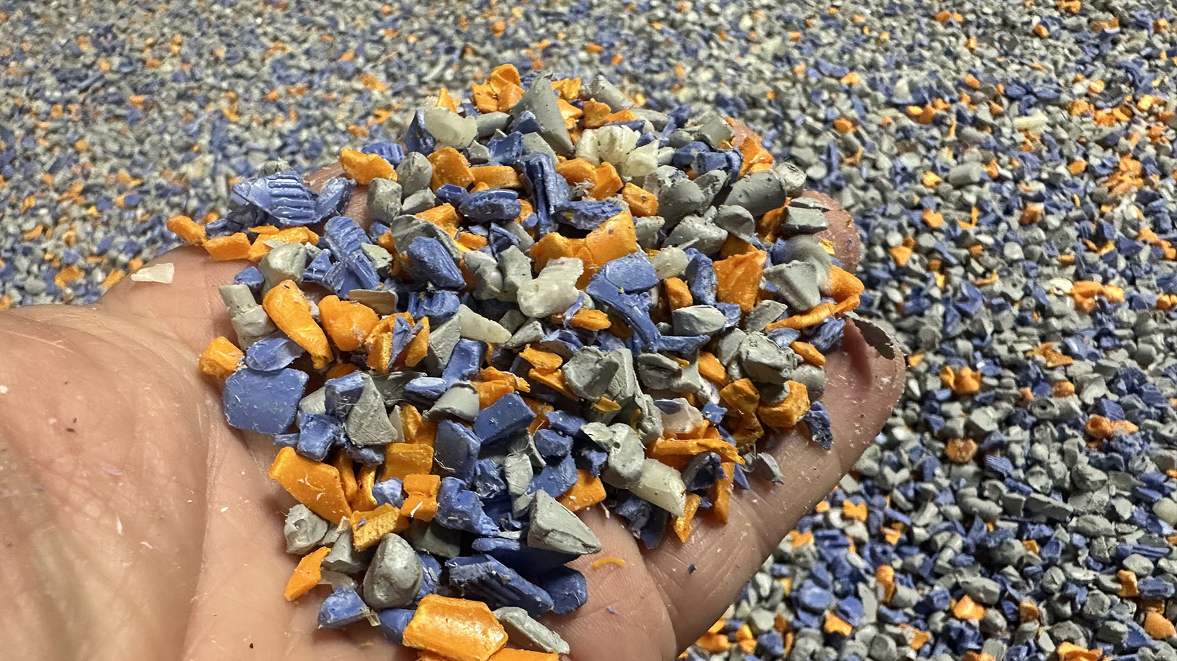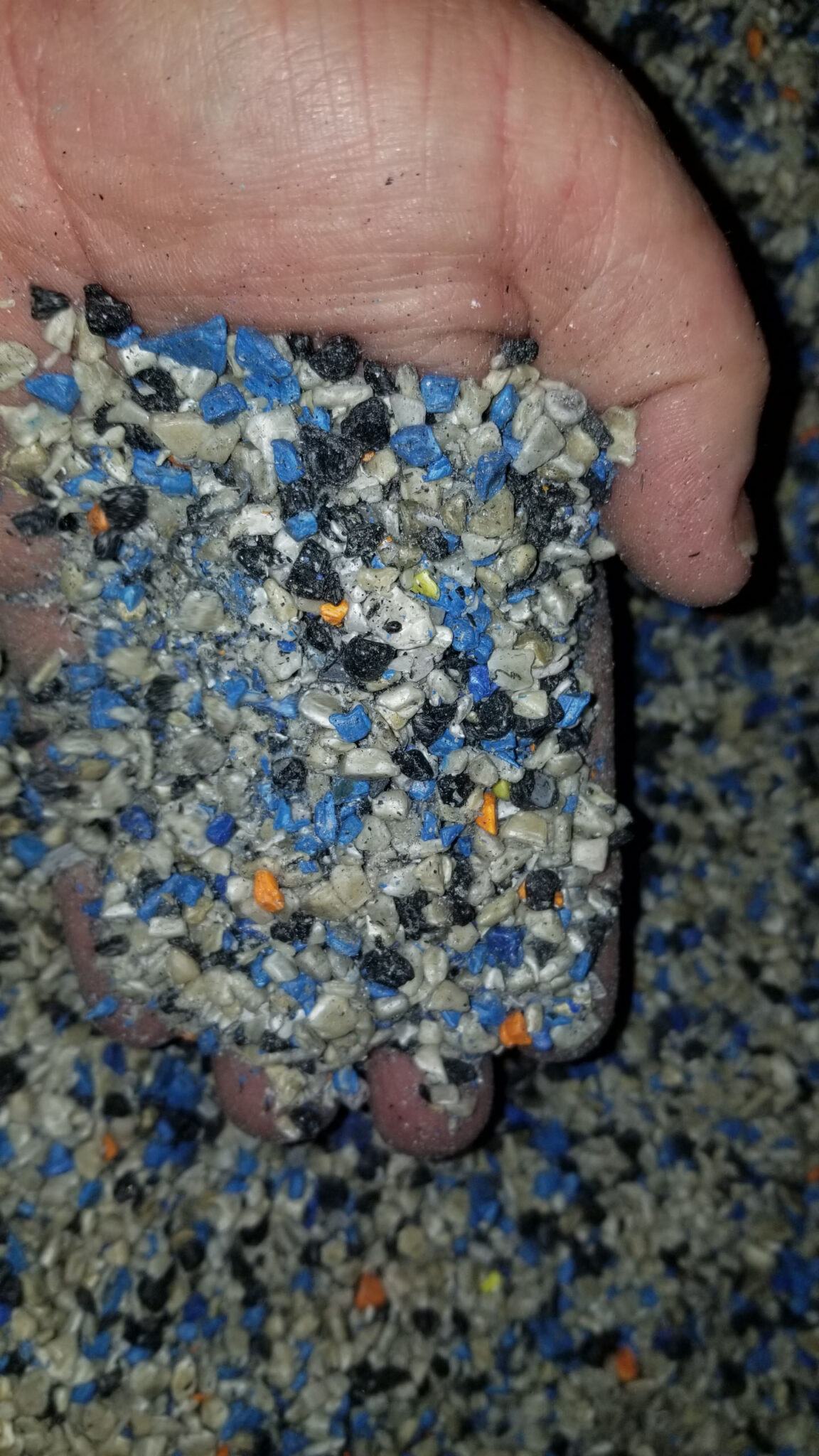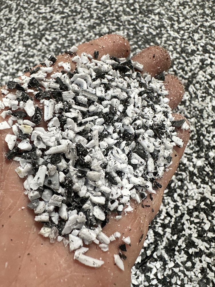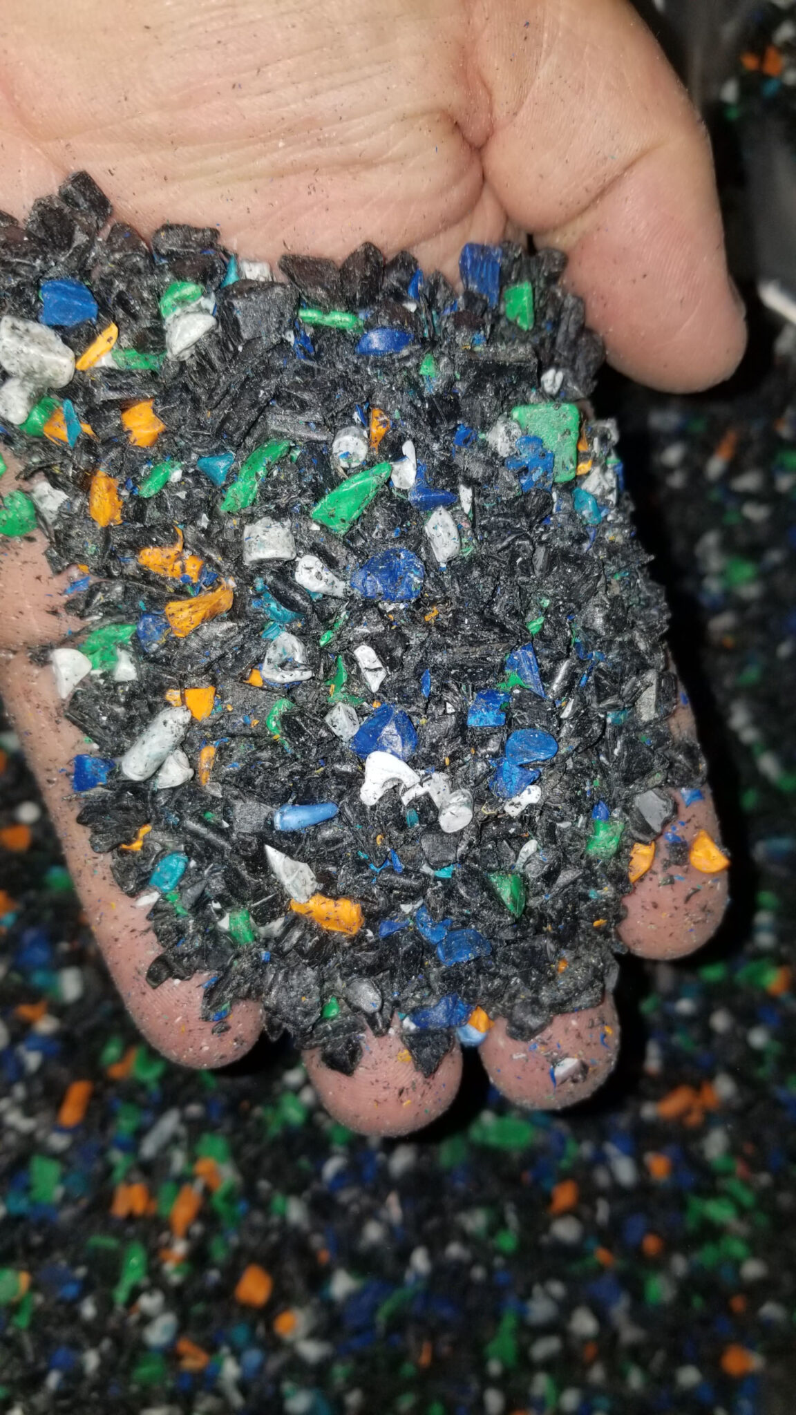 Our resins are mainly reclaimed post-industrial plastic scrap that we’ve shred and ground in our facilities. The material originates as parts, runners and lumps that we process back into manufacturing quality regrind.