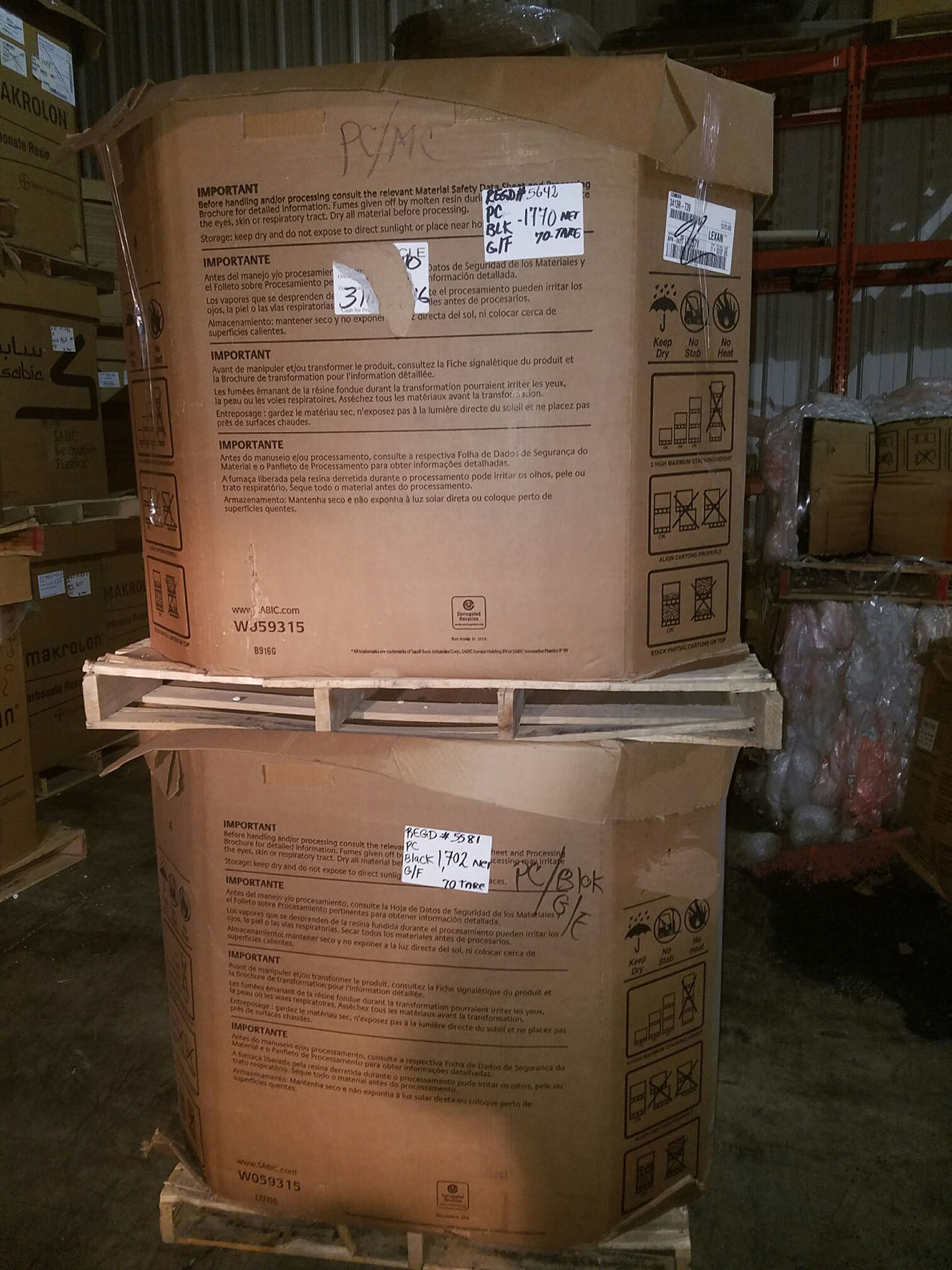 They include materials such as PP, PE, PS, PC, ABS, Nylon, PETG, etc. All of our materials are quality resins and can be provided with the original OEM data sheets. We do also have a limited amount of virgin resin and color concentrates.